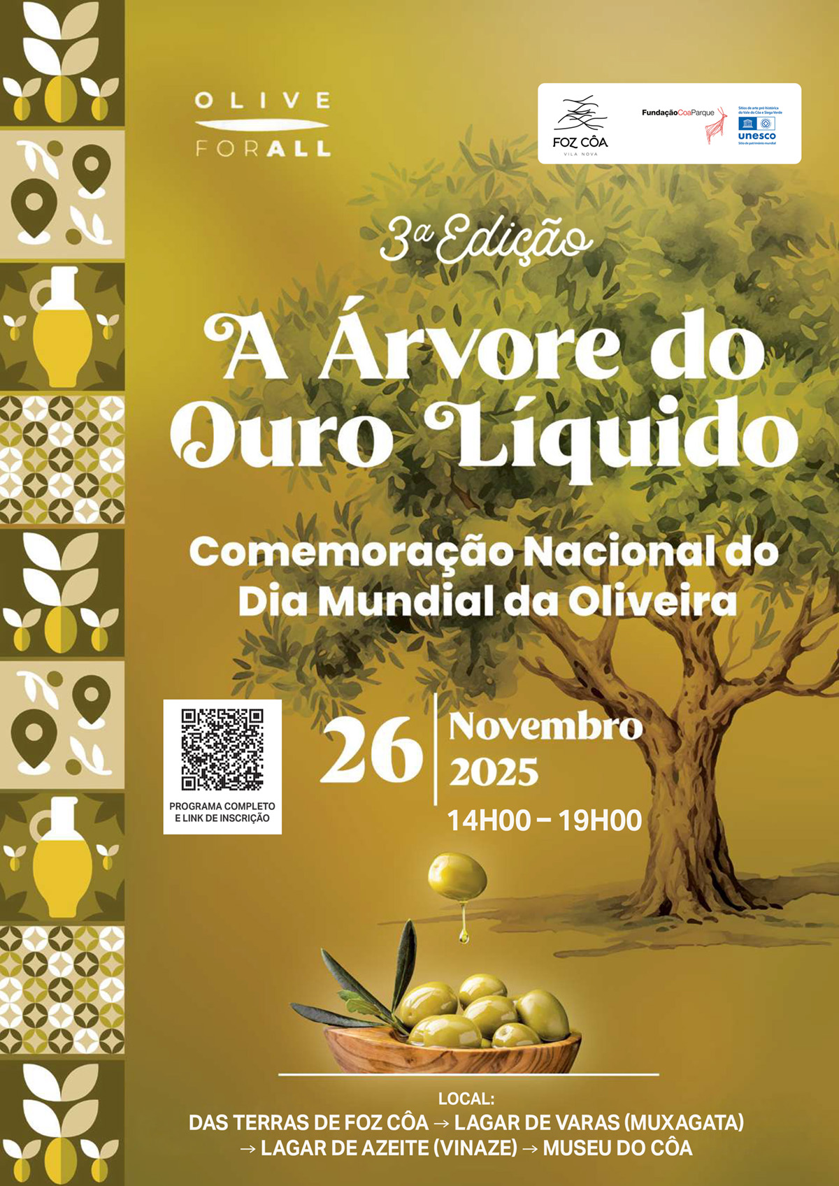 Agenda Cultural 20 janeiro 2021 EventosXX Feira do Livro Foz Côa 2025 28 de nov. a 14 de dez. EventosComemoração do “Dia Mundial da Oliveira 2025” Data: 26 de novembro de 2026 ExposiçãoExposição “Do Poder e da Glória” Inauguração: 7 de novembro de 2025, às 18h DesportoEscola de Natação DesportoMexa-se + DiversosCÔARTES - Academia de Música