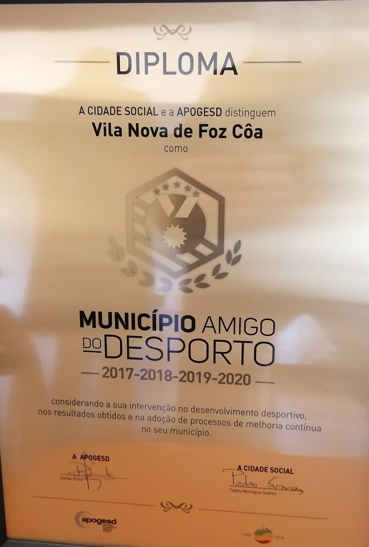 O Município de Vila Nova de Foz Côa, foi hoje distinguido em Viana do Castelo, como MUNICÍPIO AMIGO DO DESPORTO, pela implementação de boas práticas no desenvolvimento do desporto e da atividade física no nosso concelho, pelo quarto ano consecutivo.
